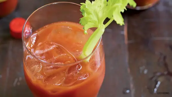 Legg til et skudd med vodka for en utmerket blodig Mary. Server på steinene og pynt med en selleri stamme.